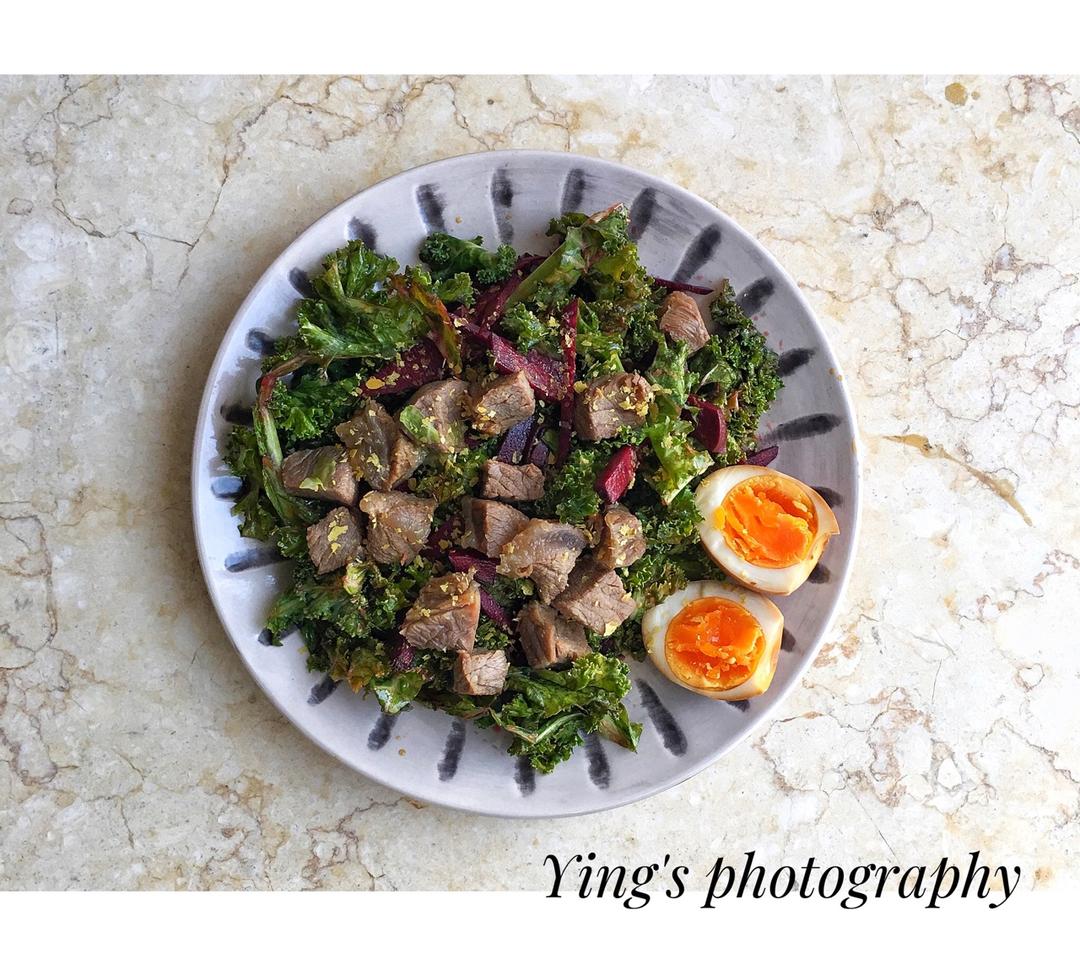 jeonseolyeong 做过 芝香羽衣甘蓝沙拉 傍晚约了必胜客,再加上昨天磕了不少零食,今早吃个无碳水沙拉清爽一下~(碳水用脂肪补了嘻嘻)继续简洁风,来一份牛肉溏心蛋羽衣甘蓝甜菜根沙拉(feat.芝麻酱➕Pb2花生粉➕营养酵母)#早餐•2019年4月6日##优雅猪精养成记# 2019-04-06
