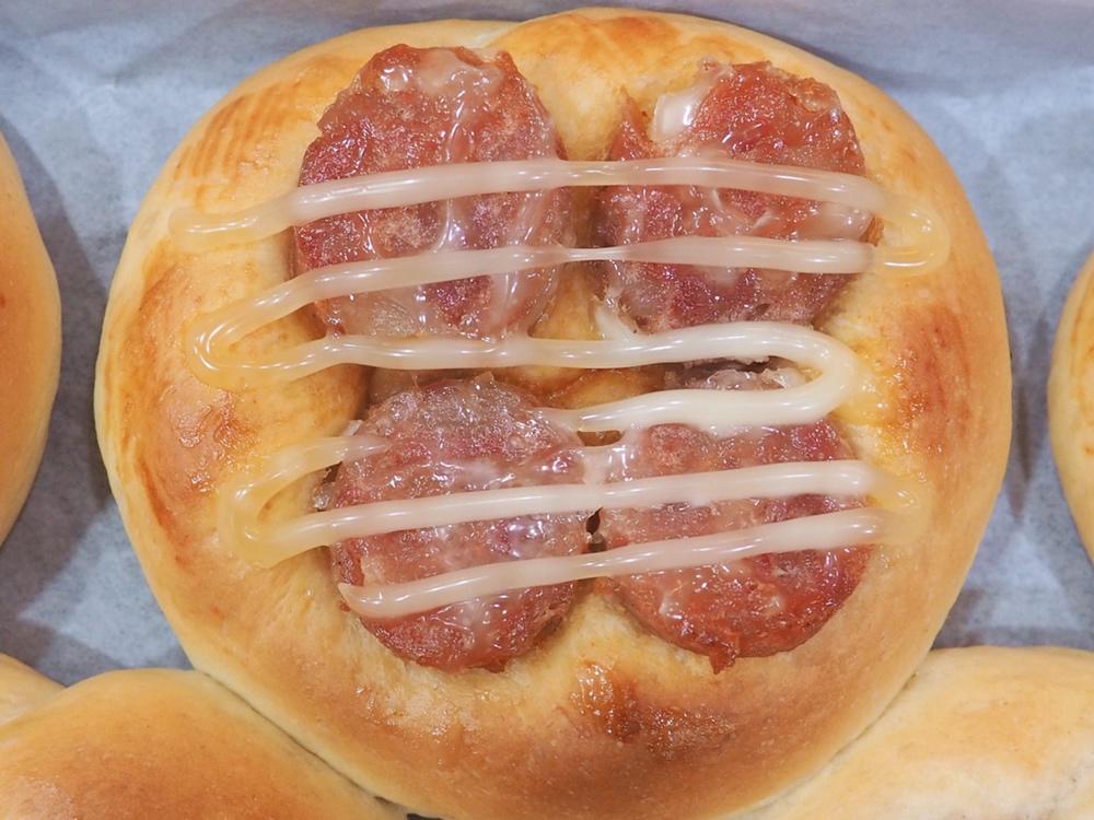 我是田螺姑姑 做过 热狗面包卷 #南方老阿姨没有厨师机#好吃,很松软,照着整形很成功,大侄子想吃蕃茄酱的,家里刚好只剩一点点,只够抹了3个面包,没加葱的那三个便是,抹的很少,烤出来底色相对深一些,加葱花几个忘记刷液了,感谢分享! 2019-04-06