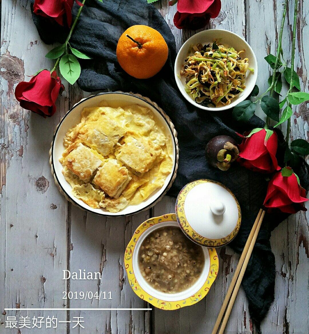 绿豆薏米粥+锅塌豆腐+凉拌小菜