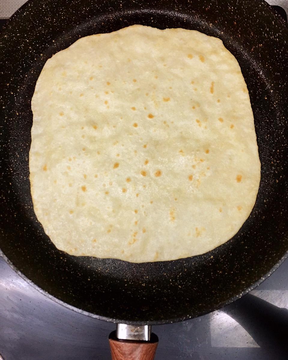 我很家常 做过 烙春饼(用视频告诉你,这饼有多软) (#晚餐•2019年4月11日#)总有人抱怨说薄饼的面太软,不好擀,擀不圆。其实为什么一定要追求擀圆呢?我觉的方的更好😂。管他方的圆的,吃就完了😝😝 2019-04-11