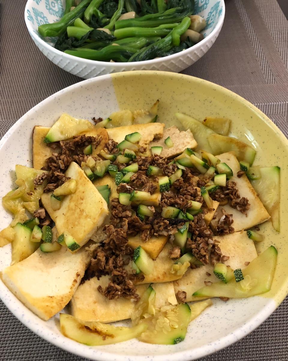 香煎豆腐~肉末西葫芦丁点缀