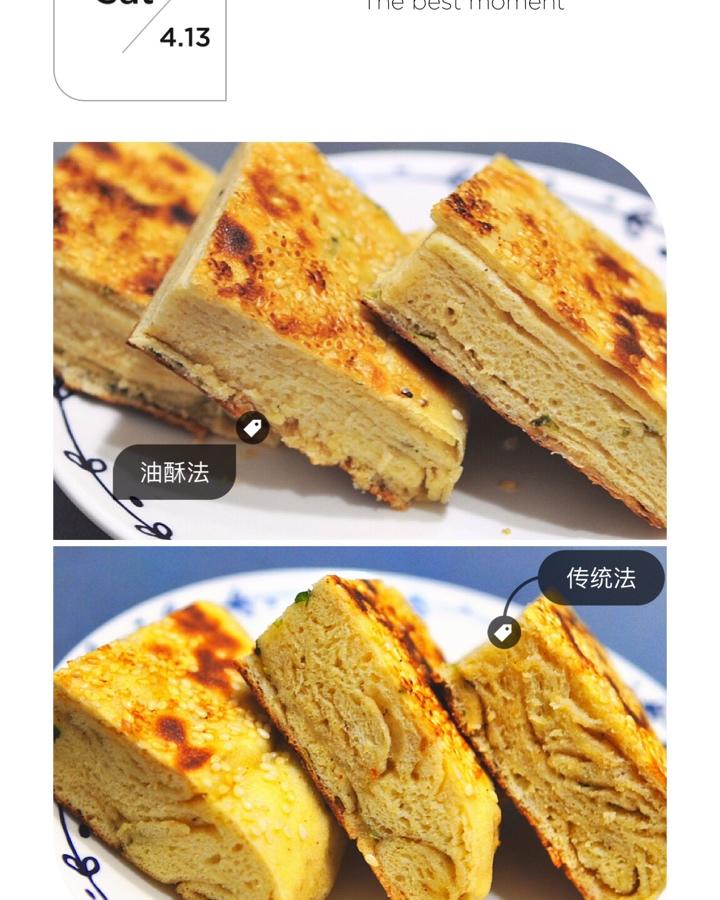齐邤 做过 发面葱油饼 #早餐•2019年4月13日#羌饼,尝试两种做法。传统法与葱油饼做法相似,多了醒发的步骤;油酥法则是做好油酥包入其中,反复折叠擀平。比较下来,口感差异不大,但油酥法层次更整齐,整形更便捷,油脂四溢风险更降低,推荐。#烙饼!卷饼!煎饼!饼饼饼!##发面葱油饼# 2019-04-13