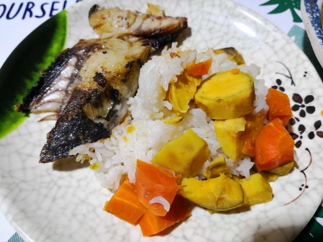 KidofIluvatar 做过 轻食健身 ~蜜薯胡萝卜饭与煎马鲛鱼~没想到是超级搭的!尤其这个鱼肉,撒点盐,少油煎一下,啥调料都不用,已经很好吃,再配豉油炒空心菜吧。#轻食健身##营养均衡# 2019-04-13