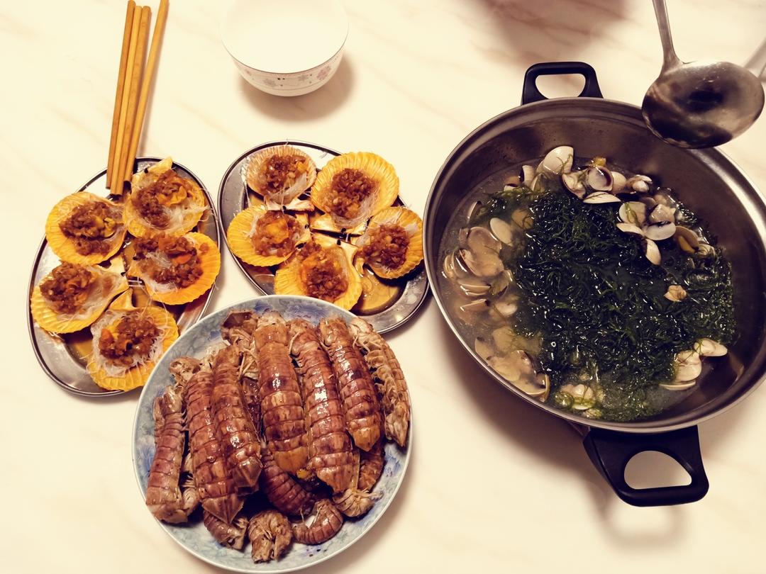 蒜蓉蒸粉丝,椒盐赖尿虾!