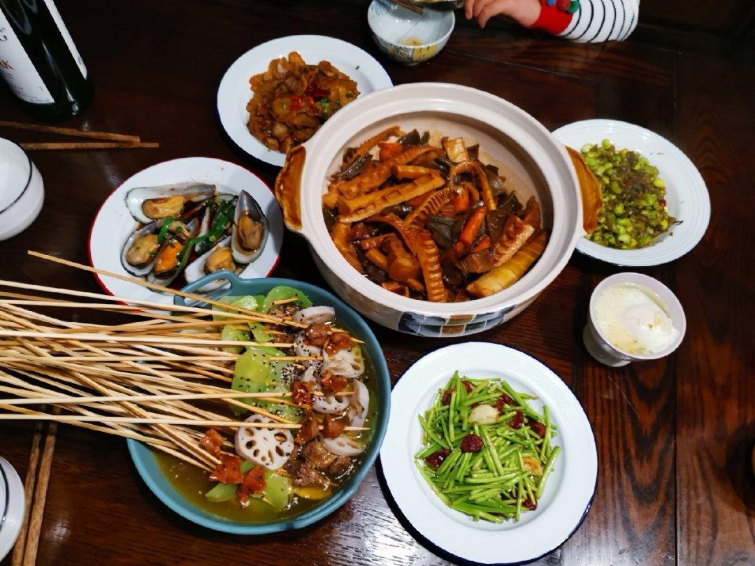 糖妈爱下厨 做过 晚餐•2019年4月13日 #晚餐•2019年4月13日# 反正也不能出门走动,白天厨房大扫除,晚上就做饭吧钵钵鸡,花式乱炖,葱油青口,五花肉炒土豆干,香肠炒芦蒿,雪菜毛豆,桂花酒酿炖蛋。配上复古的歌单,和女儿一起耸肩😜 2019-04-13