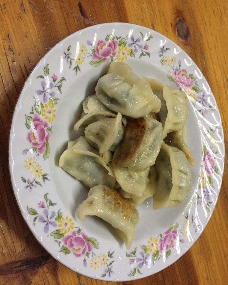 煎饺,炒包菜配红薯稀饭