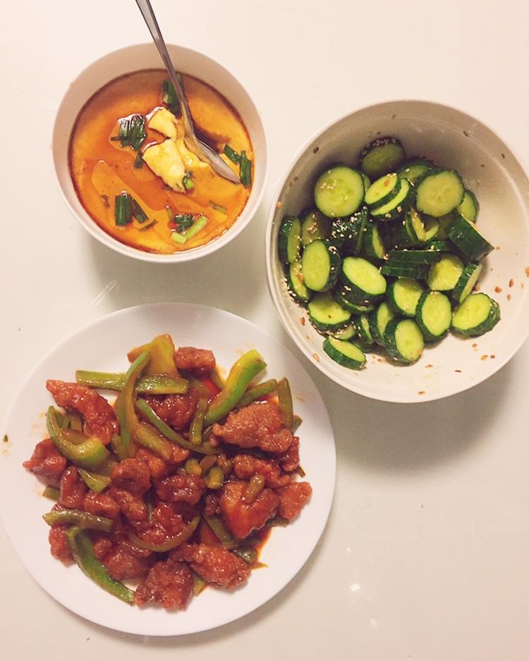 咕咾肉是新雅半成品,加了青椒多加了番茄酱,居然很好吃。