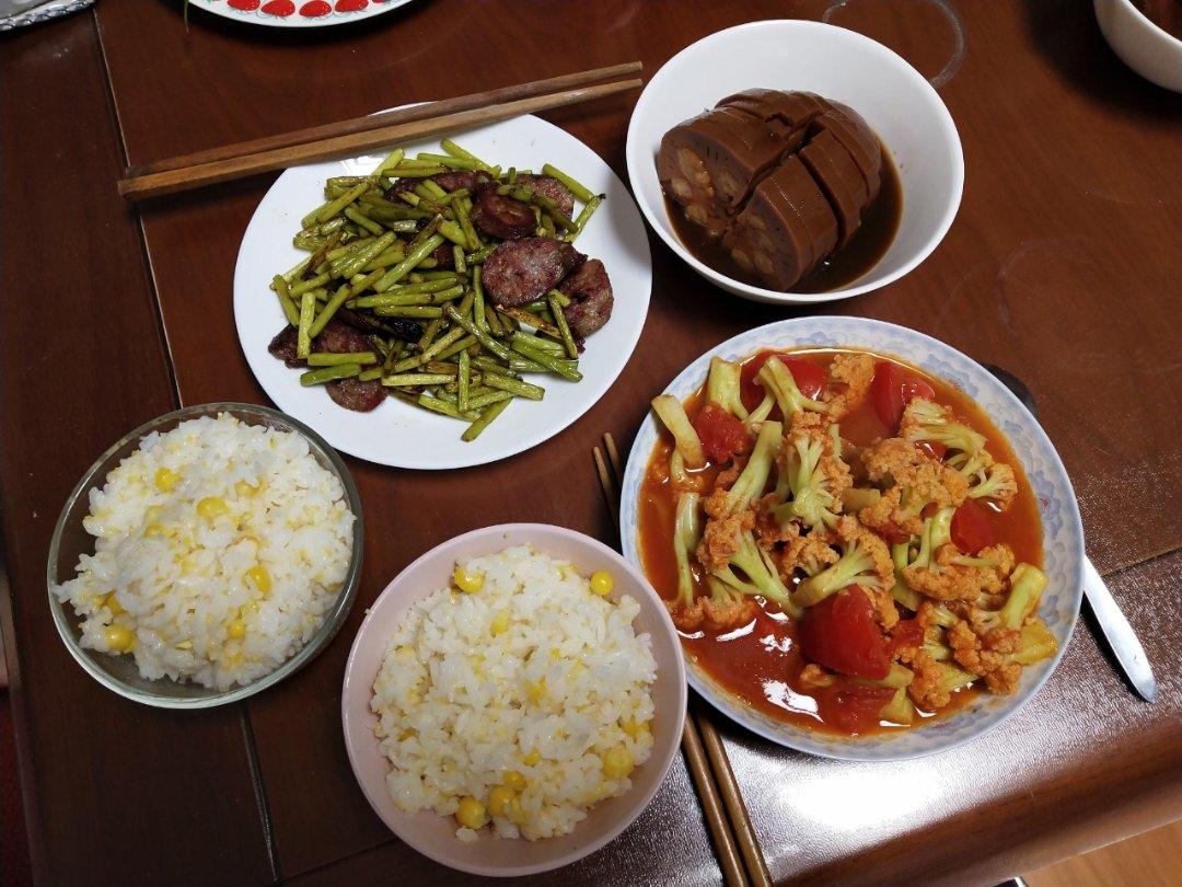 终于吃到自己在家里的一顿饭。玉米碴子饭好吃,糯米藕好吃。