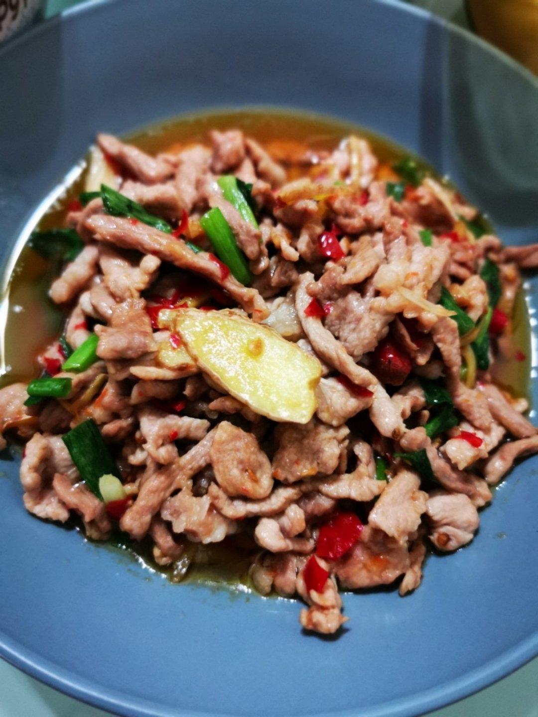 糟辣椒鱼香肉丝 蒜泥清炒红蔊菜