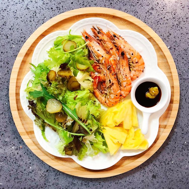 难得晚餐:黑胡椒黑虎虾🦐➕蔬菜沙拉🥗🥬🥒➕芥末酱油