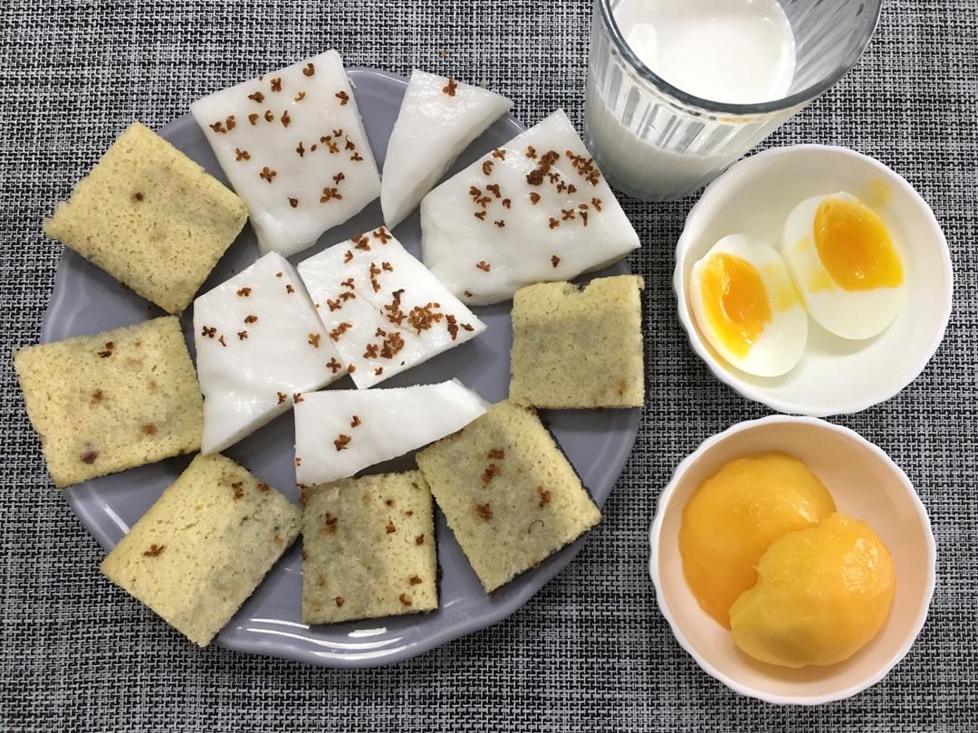 鸡蛋糕 桂花糕 流心蛋 黄桃 牛奶