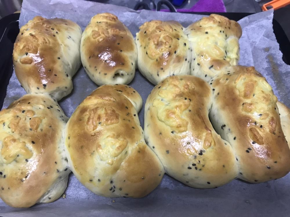 欣语心愿128 做过 2019年05月16日 按照配方制作,没有加淡奶油,家里没有模具,所以做成了牛角形,其中两个加了烤肠,第一次制作,外形不太好看,但味道还不错。长帝烤箱180度上下火,约15分钟。六分钟时盖锡纸,下表颜色较深,下次可以温度再低一点,记录一下! 2019-05-16