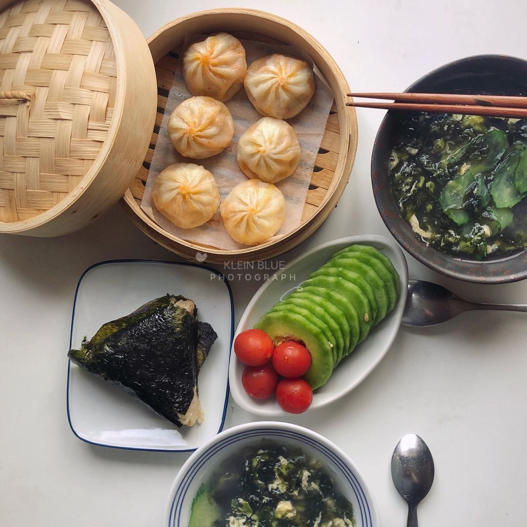紫菜蛋花汤、泡菜芝士小包子、香笋🍙