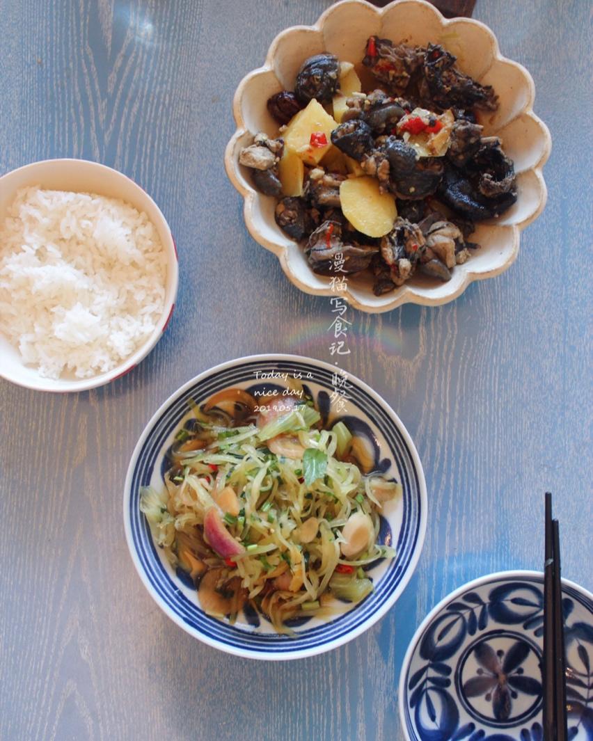漫猫与兜宝 做过 晚餐•2019年5月17日 #晚餐•2019年5月17日##漫猫写食#晚餐补打卡辣子鸡,超级好吃的凉拌莴笋,娃的米饭,他要7点踢足球,我每周五到家得赶紧做好晚饭吃完提前到足球场学习。 2019-05-17