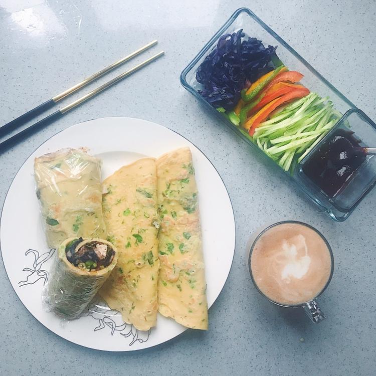 轻俏的小韩韩 做过 快手早餐-摊鸡蛋饼 #早餐•2019年5月19日#早餐🥣:鸡蛋卷饼,拿铁每次路过学校周围的小市场,各种小摊的味道都好香呀!怀念上学时候早餐亭里的鸡蛋羹,吊炉饼还有小咸菜 2019-05-19