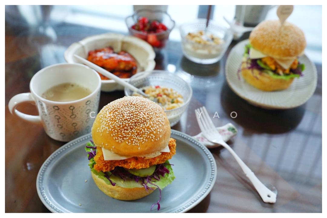 尧小妹 做过 2019年05月20日 【生活记】 早餐=鸡腿🍗汉堡+新奥尔良烤翅+酸奶麦片+红枣豆浆+水果 汉堡:奶酪片+黄瓜+甘蓝+生菜+烤鸡腿+面包胚子 鸡翅和鸡腿:直接烤箱搞定,不用油炸,健康美味。 杨哥说吃得好满足 今天要开始收拾东西啦,提前做好准备工作。 2019-05-20