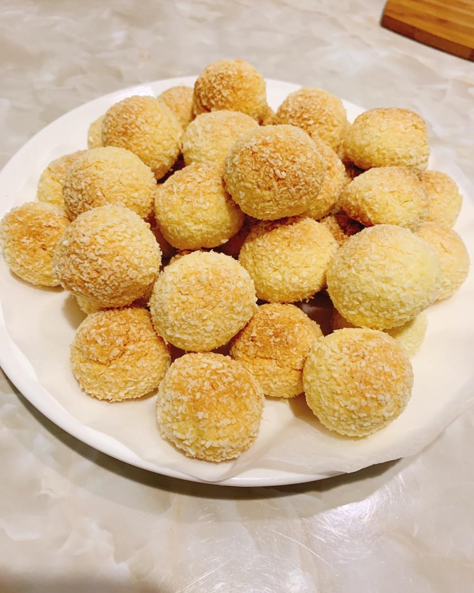 没有椰丝,家里椰蓉快过期了,拿椰蓉做的,面粉减了10克,椰蓉加了10克,没吃过椰丝小球,不知道用椰丝做出来的是不是这个味道。