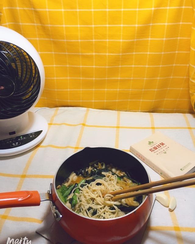 炒完明天中午的菜,留了一点出来,继续加水煮面条~快手又适合我的口味