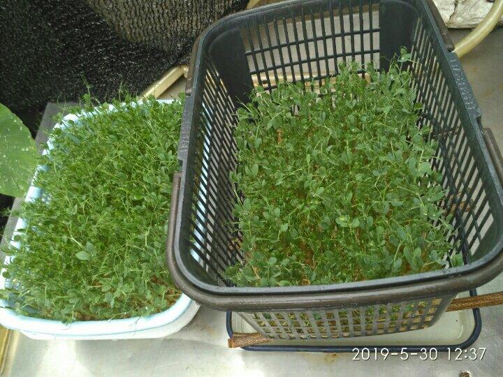 #午餐•2019年5月30日# 第一次发豌豆苗,估计过2天好吃了,后阳台成了小菜园了,种了.茄子,紫角叶,芋头,就是太晒了,不知道能不能长好。以前种的好几盆茶花茉莉花菊花都死翘翘了