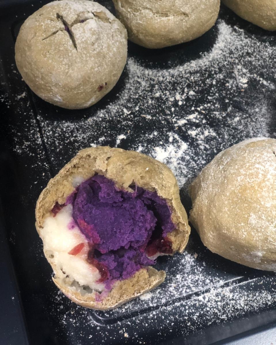 无油无糖无蛋低卡低脂全麦麻薯南瓜(紫薯、芋泥)欧包-减肥必备