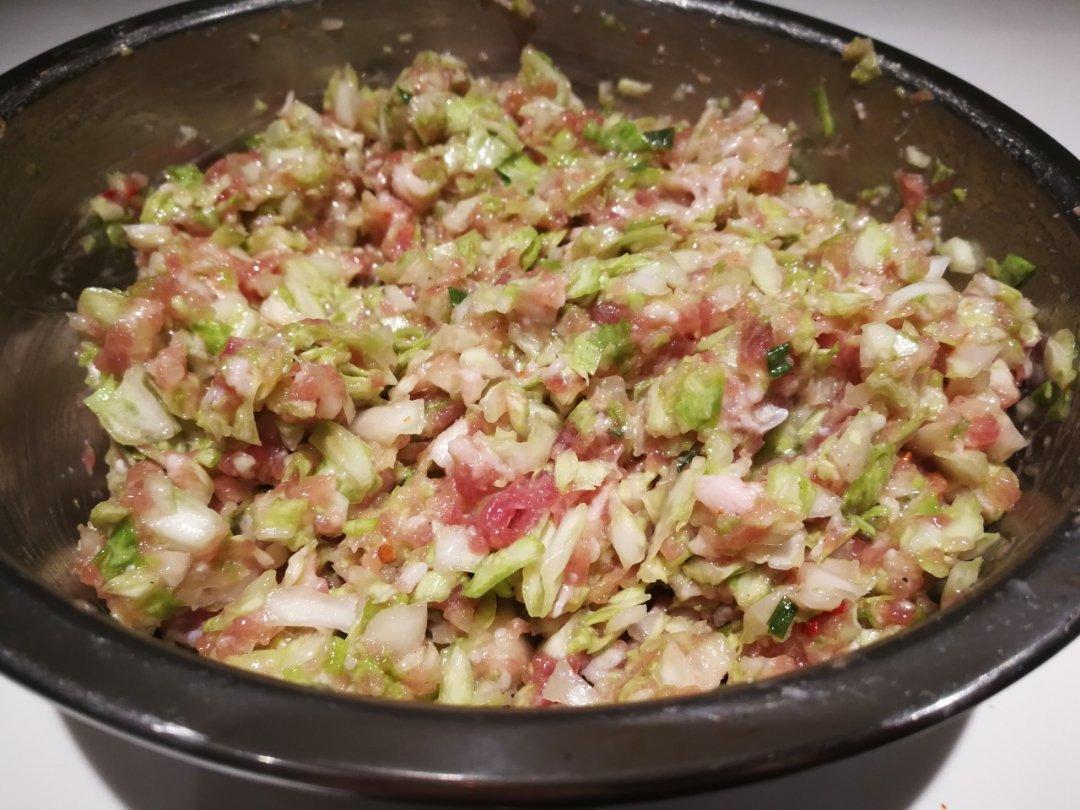 准备了包心菜猪肉馅,明天早上包饺子吃。
