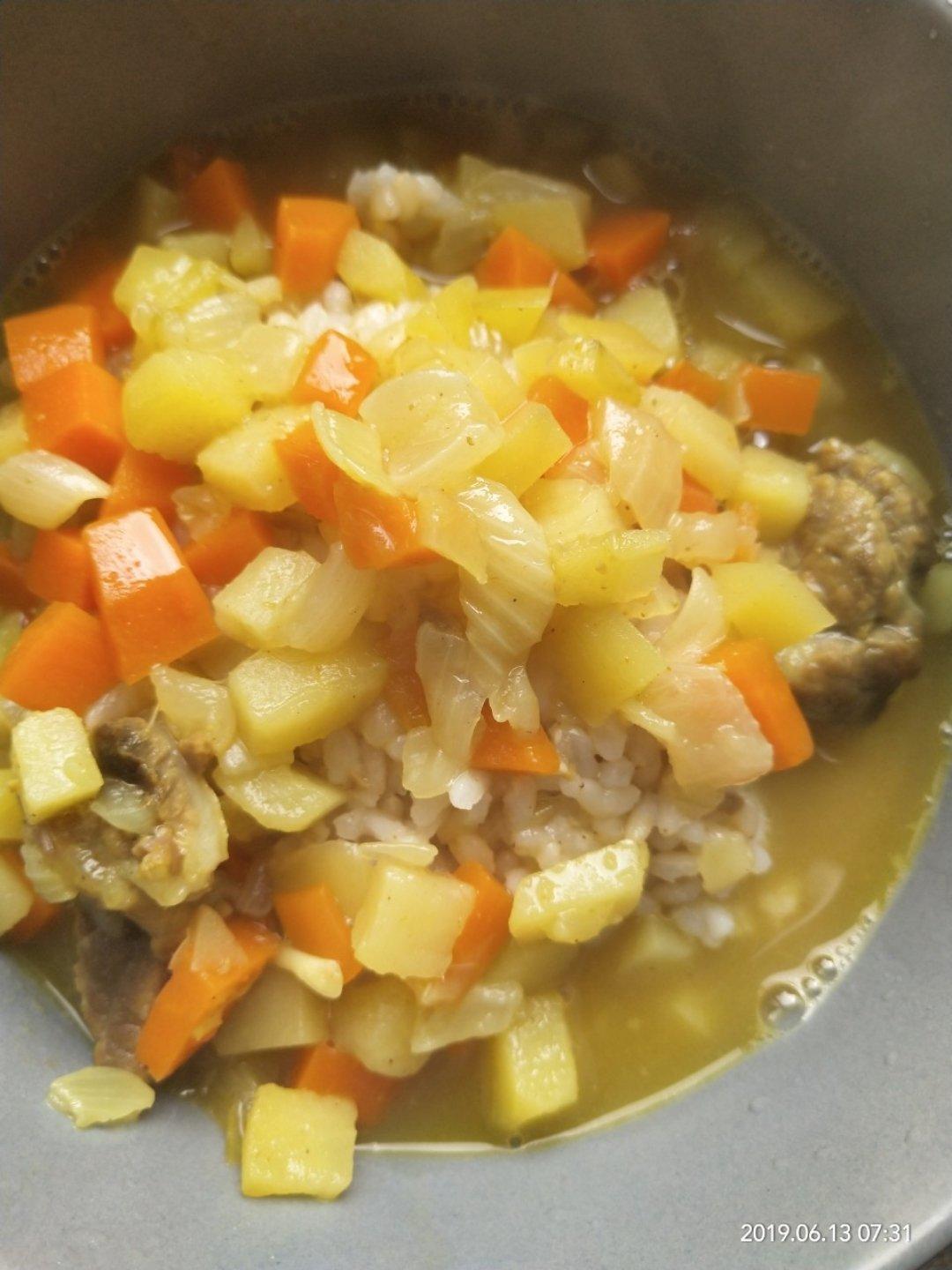 咖喱牛肉配上我的糙米饭 宝宝的配白米饭