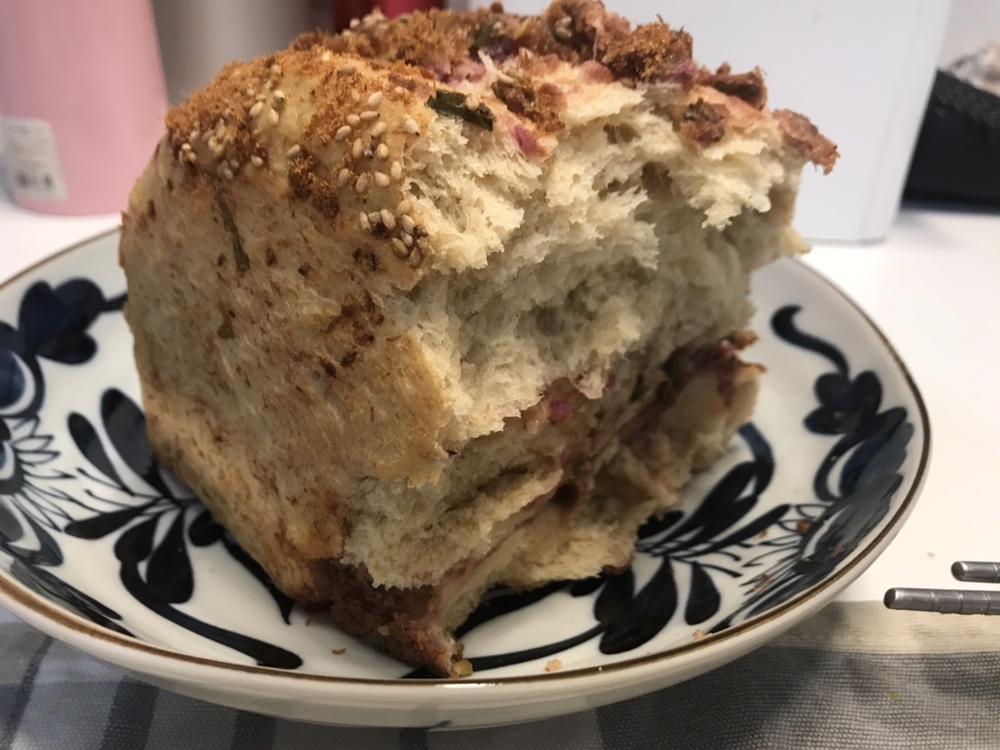 吃了一半想起来拍照了…一次做了俩,一个原味一个肉松,都好吃😋