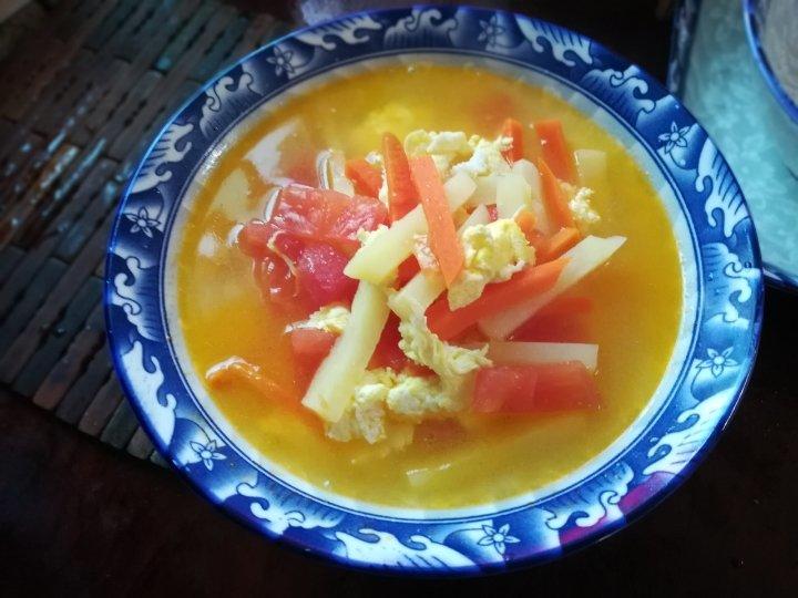 土豆、胡萝卜、番茄、鸡蛋汤打开久讳的下厨房😊,各厨娘们早安🌹