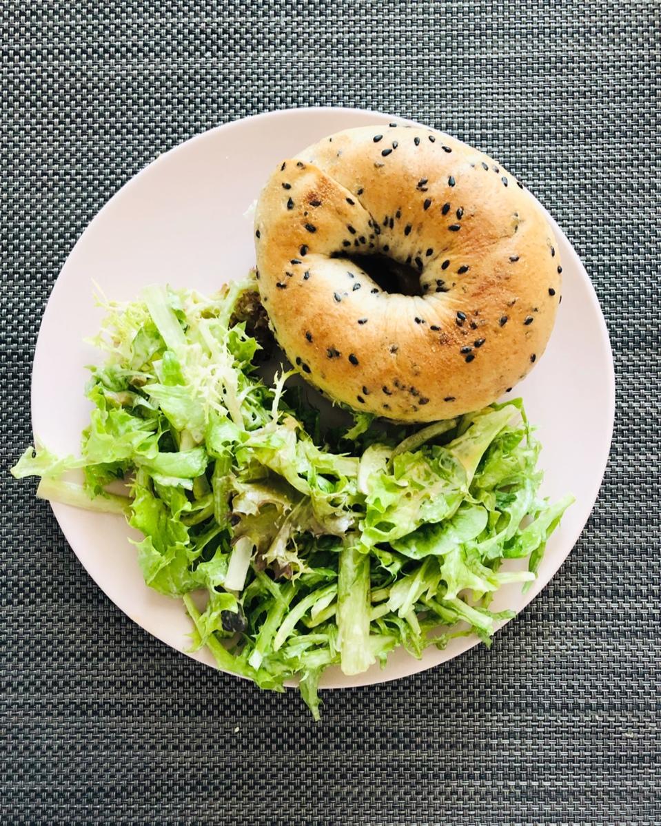 今天的贝果夹了杏仁酱和香蕉,超满足