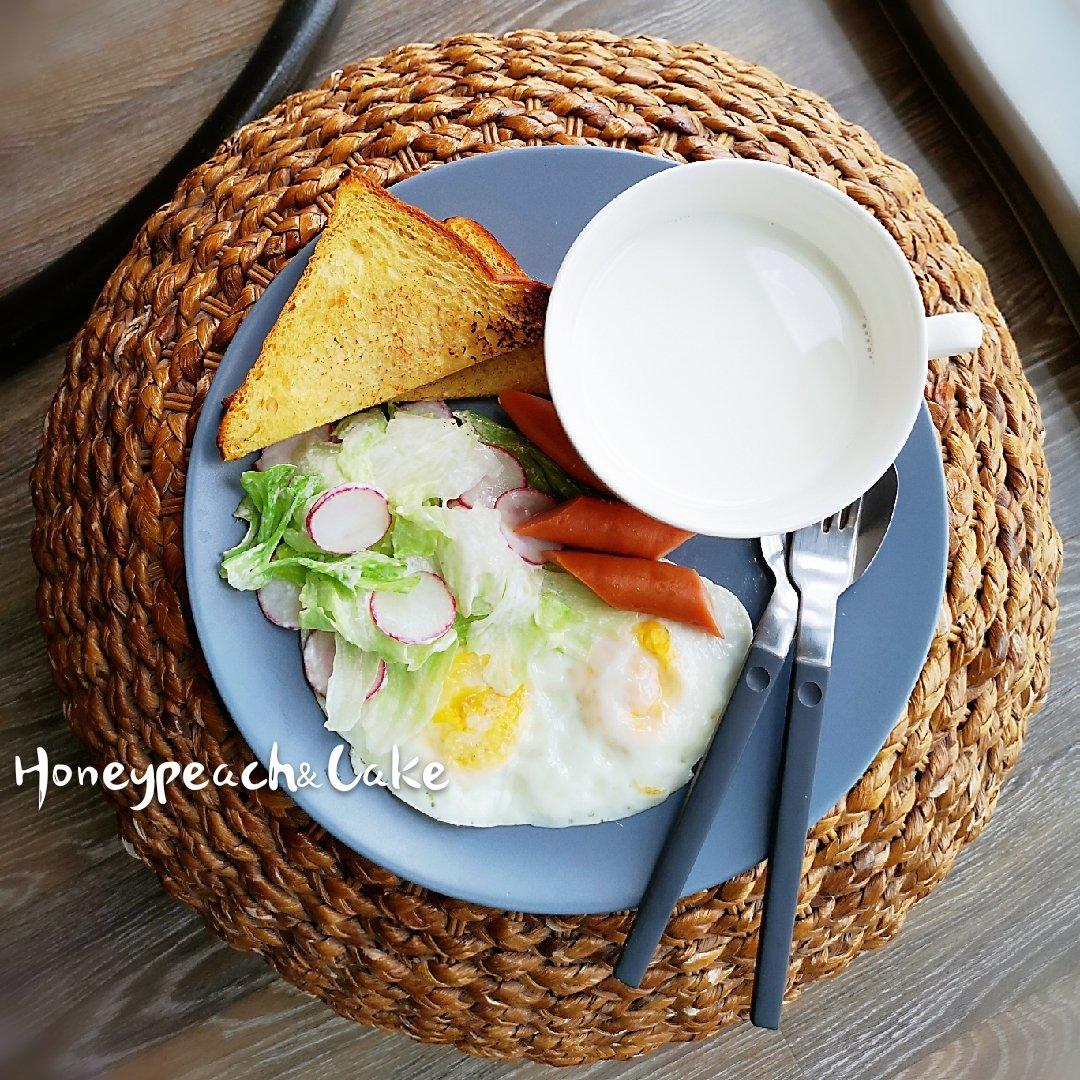 今日早餐:红薯吐司🥪+煎蛋🍳+蔬菜沙拉+蜜肠+牛奶🥛,早安!