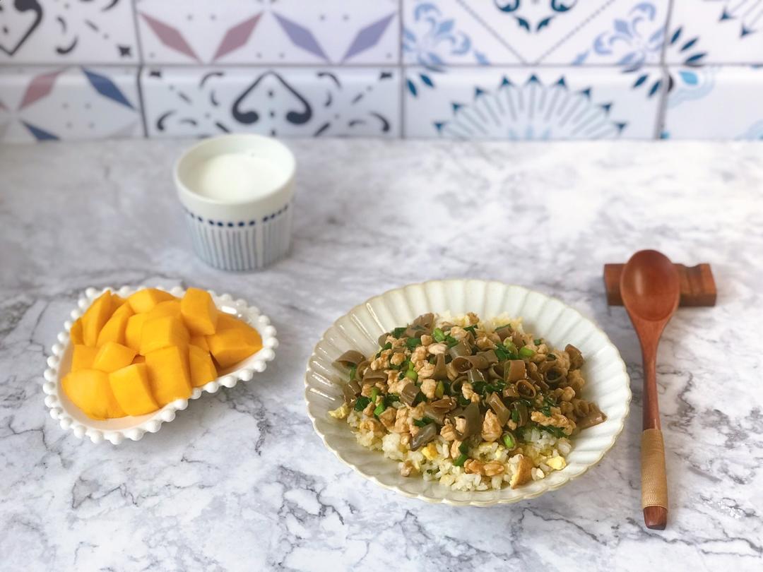 挑食de厨子 做过 早餐•2019年7月18日 #早餐•2019年7月18日#人生啊,总是不断的有你意想不到的事情发生,不知道哪天喜从天降,不知道哪天灾难降临。不能想太多,只能往前看。海肠捞饭,牛奶,芒果。 2019-07-18