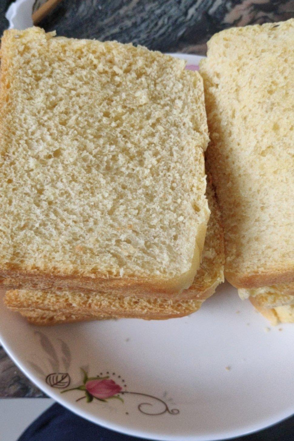 第一次做吐司面包,67分满就放进去烤了,没有放鸡蛋牛奶,少量普通油