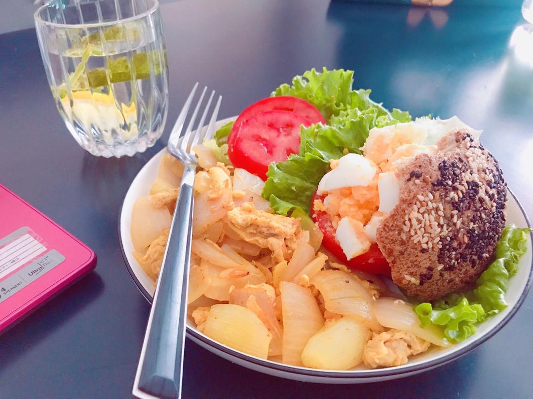 Lazy_Barbie 做过 Lazy Life Easy Eat 汉堡胚烤出来香香的,没忍住偷吃好几口贪吃如我哈哈洋葱炒鸡蛋,放点盐再来点虾皮鲜鲜的放姜黄的时候,打碎了一瓶超级少女的粉盐,有点桑心#早餐•2019年7月24日# 2019-07-24