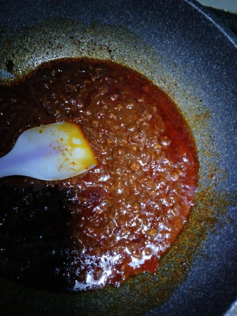 放了牛肉丁,吃的时候郫县豆瓣酱里面的辣椒好多啊!!!不方便。不过酱很好吃