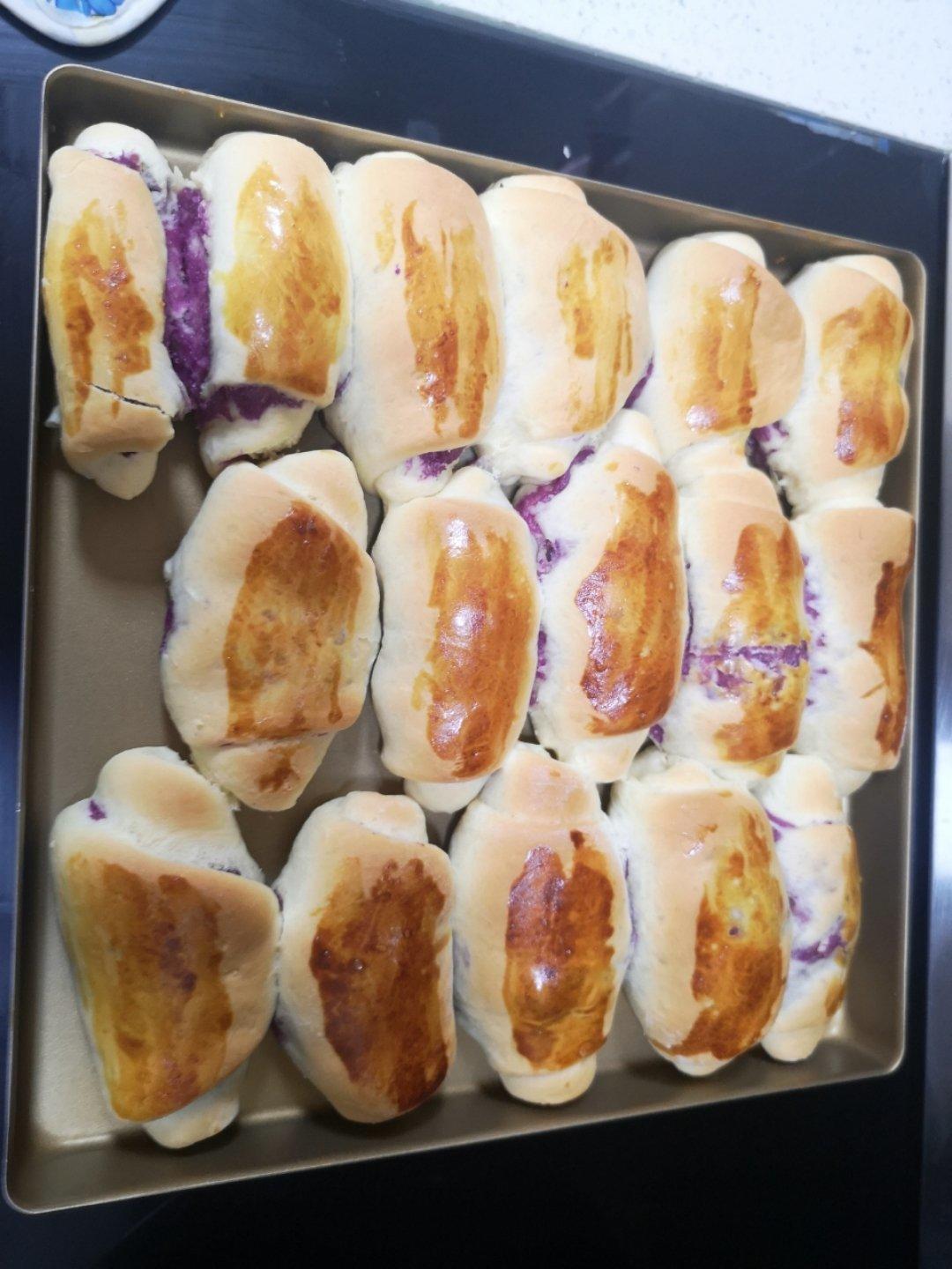 无滤镜的拉丝紫薯面包