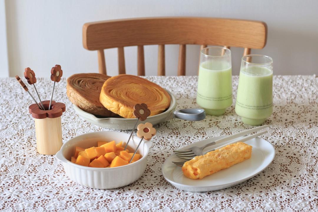 潘美味的小食光 做过 早餐•2019年8月5日 #早餐•2019年8月5日#🌻二人食❥今日份早餐:唱片面包 厚蛋烧 凯特芒果 毛豆豆浆强烈推荐这个面包,适合没有时间的早上拿着它去上班,或者像我一样,不想做面包的时候,囤一份,坐下来一层一层撕开它来吃新的一周,早安。🌿 2019-08-05