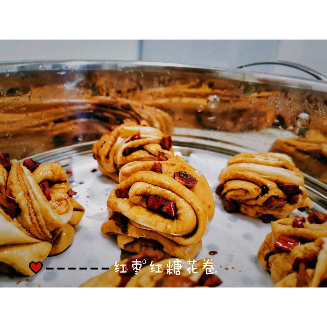 自制红糖红枣花卷