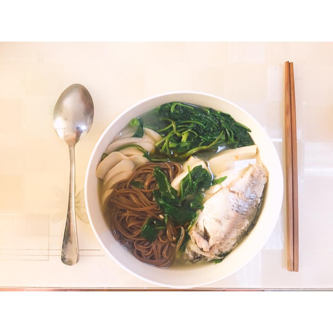 银蓝色的眼睛 做过 午餐•2019年8月19日 #午餐•2019年8月19日##一人食##减脂减脂#大姨妈痛得死去活看,跟从水里面捞出来了一样,等终于缓过劲儿了,做了鱼汤荞麦面好好养一样(T_T) 2019-08-19