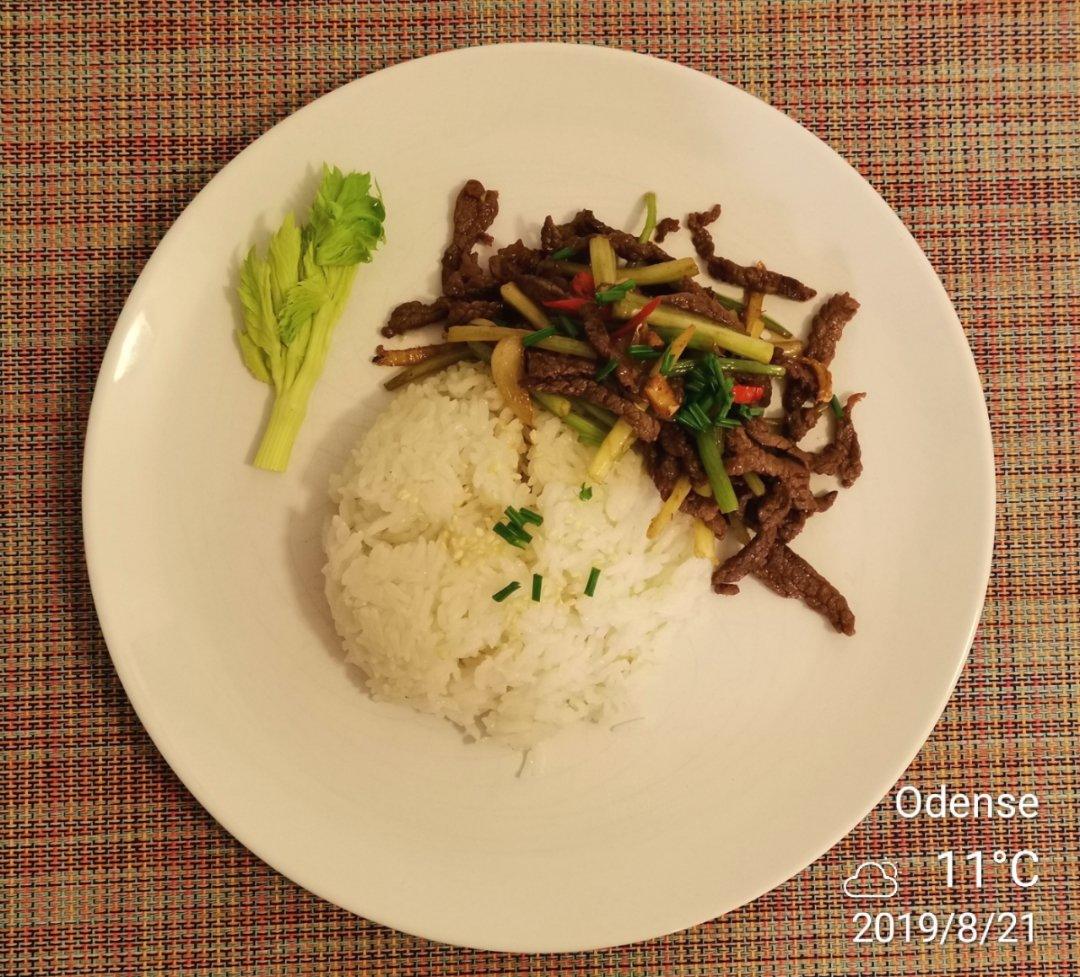 芹菜牛肉盖饭