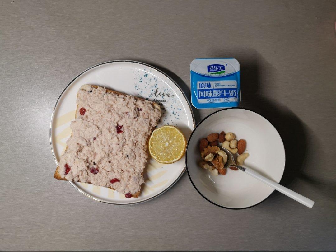 咸鲜的金枪鱼肉末酱里,甜甜的蔓越莓干是灵魂,早餐要吃好一天才有动力🙃
