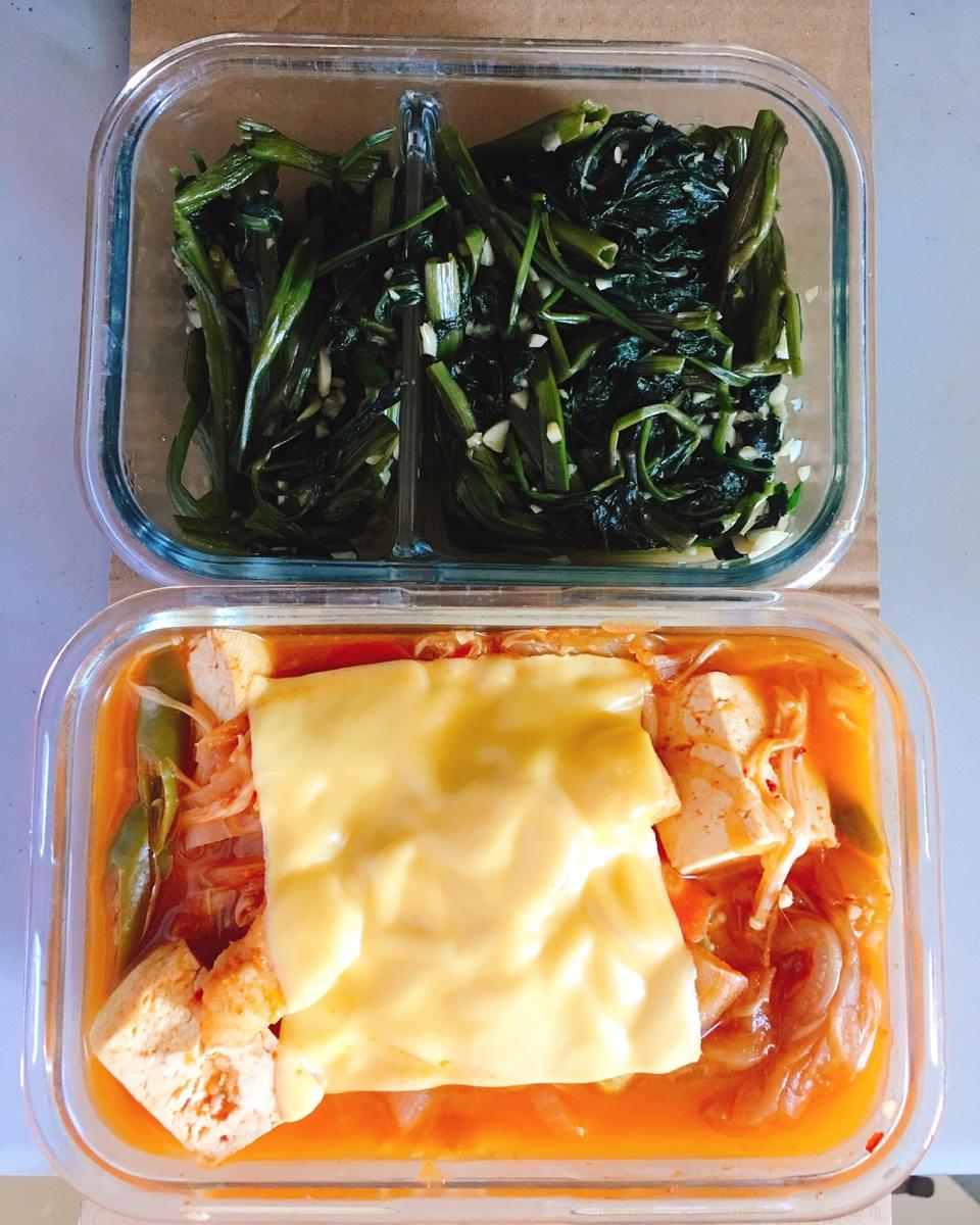 银蓝色的眼睛 做过 午餐•2019年9月22日 #午餐•2019年9月22日#泡菜豆腐龙利鱼汤蒜蓉空心菜完全没想到买来的辣白菜出乎意料的酸,没有放糖的时候真的不好吃,所以只能放了一点点,还好,味道被纠正了一些,感觉还不错,空心菜就是简单的蚝油蒜末,喜欢 2019-09-22