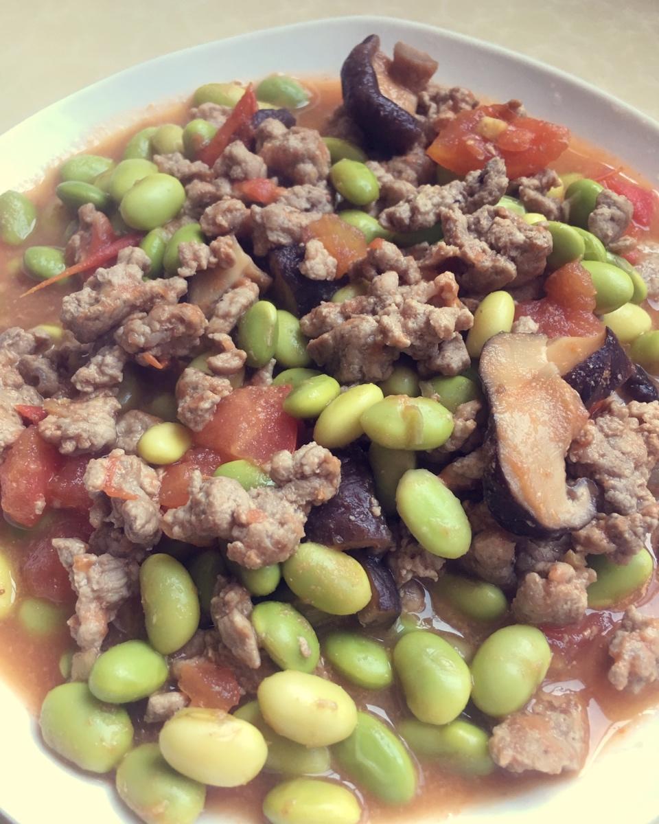 肉末番茄烧毛豆