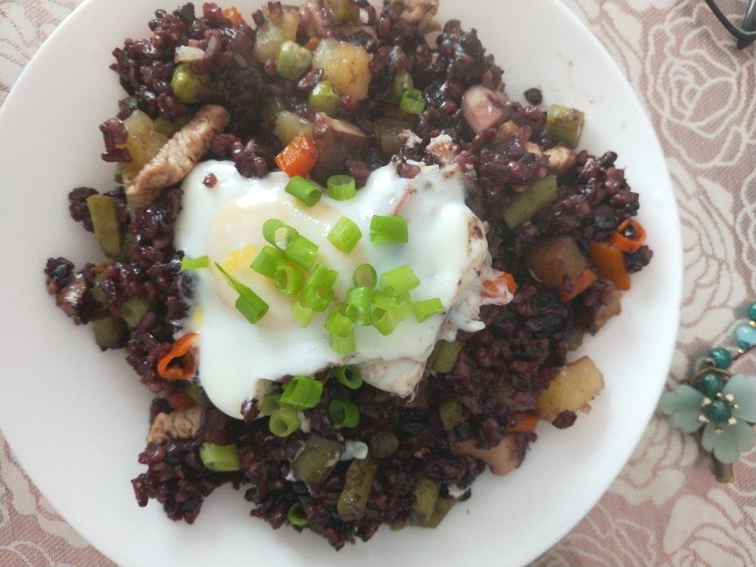 香菇豆角鸡肉焖饭,用的燕麦米黑米和糙米,超级好吃