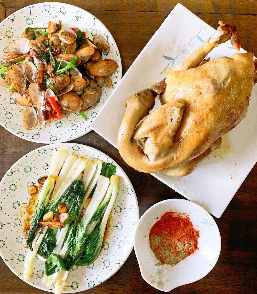 减肥期间不好吃饭,盐焗鸡很不错,吃完一整只还有隐藏的4个螃蟹,肚子又撑爆了