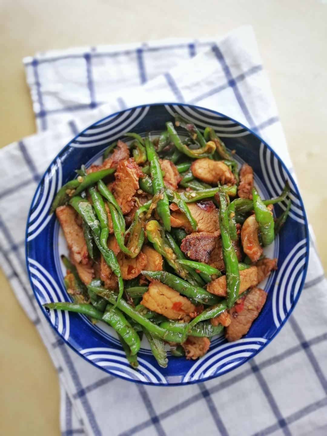 青椒回锅肉,老爸自己种的辣椒,真是太辣了