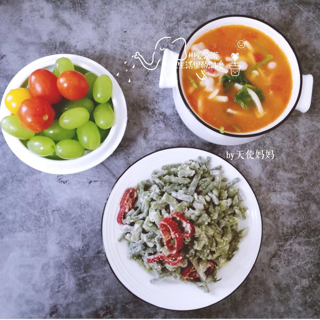 天使妈妈66 做过 2019年06月12日 早餐不能将就必须有色香味来勾起她的小胃口料理机还是很方便十几分钟就能做好一份完美的鱼丸某个爱吃鱼🐟 的孩子喜笑颜开[偷笑]…………今日早餐:白菇番茄🍅 鱼丸汤+蒸豆角+青提小西红柿 2019-06-12