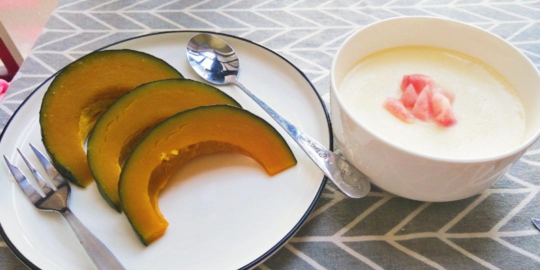 牛奶蛋和板栗南瓜的早餐,很舒服