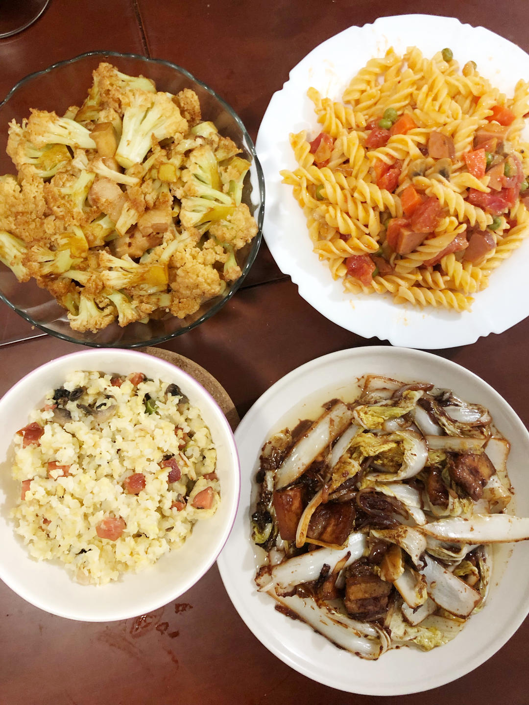 「菜花炒五花肉」「私家炒饭」「番茄香肠意面」「干锅娃娃菜」