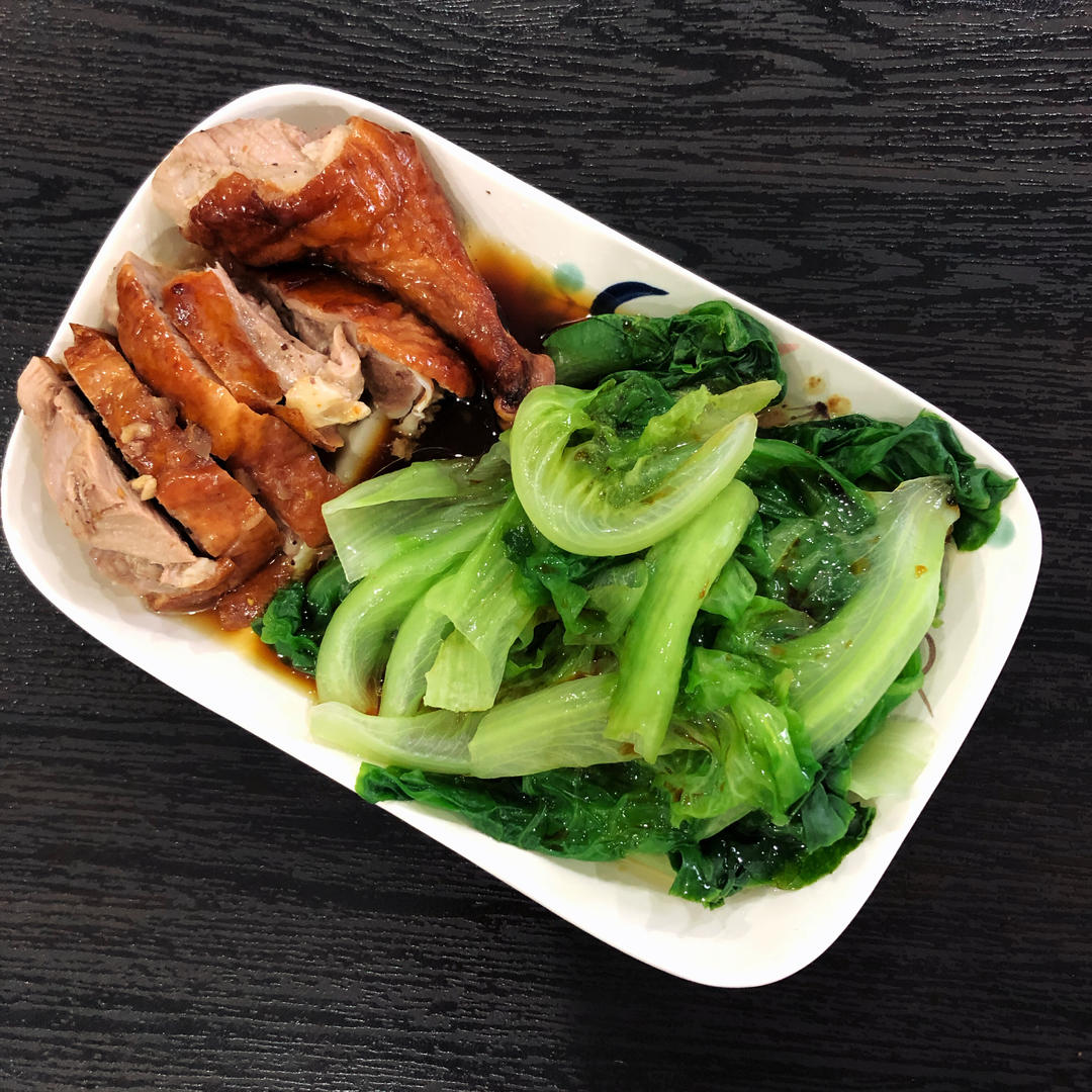 今天老吴陪他堂哥去提车,随便买个鸭腿和一棵菜,就一个晚餐啦。😁