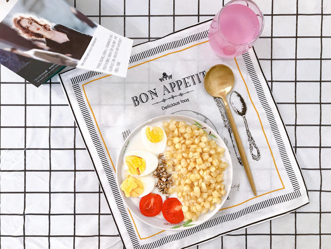 🍽安慕希酸奶➕玉米➕煮鸡蛋➕西红柿➕炒青稞